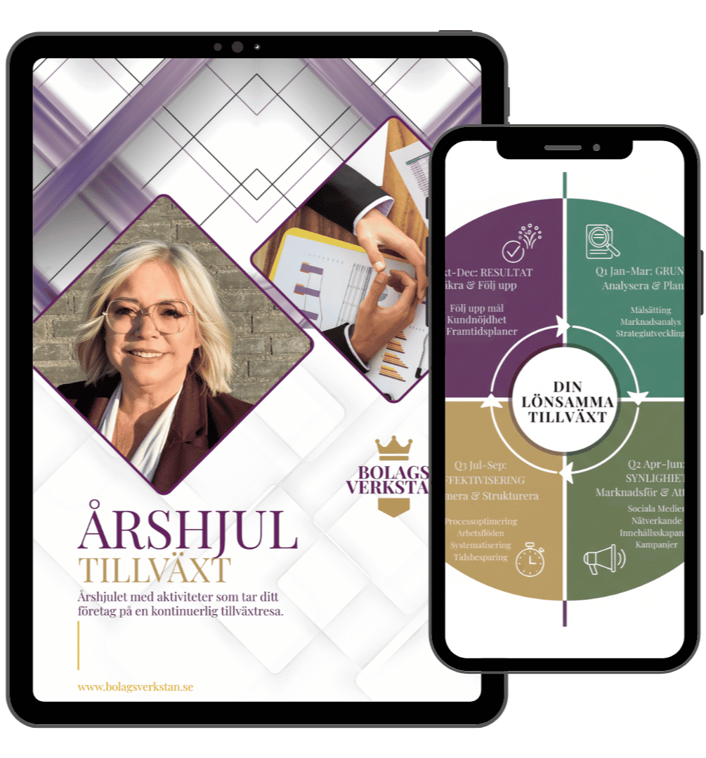 Årshjulet som ger dig strategisk plan för hur du kontinuerlig arbetar med ditt företag för att skapa en lönsam och garanterad tillväxtresa. Fyll i namn och e-mail så får du den strax i din inkorg. Du kommer även att få handfasta tips och praktiska råd som fungerar din mail.